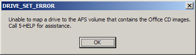 The program was unable to set drives to the appropriate AFS directories.