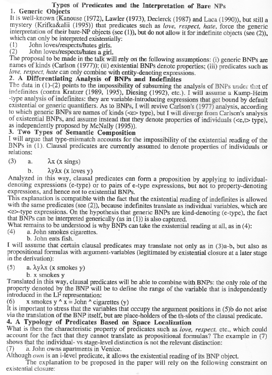 Carmen Dobrovie-Sorin: Types of Predicates and the Interpretation of Bare NPs