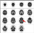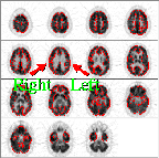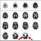 Click on image above to view full-size image.Neurological scans are normally presented with the right/left sides of the brain reversed with respect to the viewer. In an FDG-PET scan metabolism should be symmetrical from side-to-side.