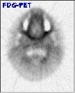 Click on image above to view full-size image.In this plane the hypermetabolic brainstem glioma is can be clearly delineated from adjacent structures.