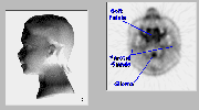 Click on image above to view full-size image.At higher magnification, we can readily see many of the structures of the upper cervical region of the neck. The darker regions reveal structures of high metabolism relative to the lighter regions.