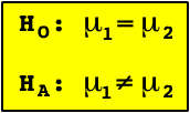 One condition that simplifies tests of 2 means is that one general null hypothesis is used for all means comparisons. The assumption that we begin with is that the means of the two populations are equal, or simply put: