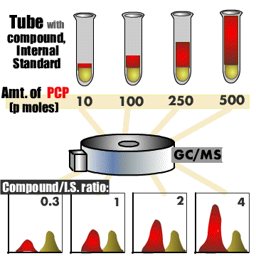 We are given a series of test tubes, each with two substances placed inside. The first is a compound of which an equivalent amount is added to every tube- the internal standard. The second substance added is the variable, an amount of PCP which varies within each tube.