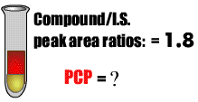 We are given a tube with the I.S. and an unknown amount of PCP. The GCMS indicates a reading of 1.8. What is the amount of PCP within this mixture?