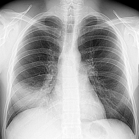 Silhouette Sign, RML Pneumonia (PA CXR) [1 of 4]