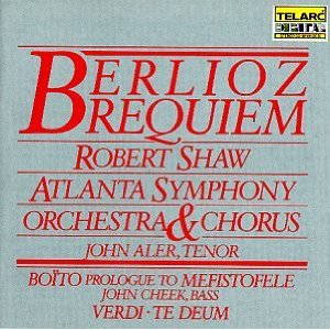 More recently, Robert Shaw has recorded the Requiem with his Atlanta forces (Telarc CD-80109, coupled with Boïto's Prolog to Mefistolfele and Verdi's Te Deum). Though a more straightforward, and perhaps less emotionally charged reading than Davis', Shaws' Atlanta Symphony Chorus is the ultimate in polish and percision. All sections sing with unfailing unity of tone and vowel, pitch is dead-center, and diction is immaculate. John Aler is the radiant, almost angelic tenor, and he floats effortlessly above the chorus in the sanctus. The orchestral playing is well up to standard though th esound o fthe instrumentalists seems oddly as if it were in a different acoustic than the choir. Where Davis' choir sounds too up-front, Shaw's seems recessed and even a bit cloudy in recorded sound compared to the orchestra. The strengths and weaknesses of the Davis and Shaw recordings are in complimentrary distribution, and the avid collector will no doubt desire both of them.
