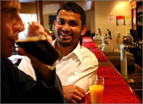 Bursting a scientific bubble Md Nurul Hasan Khan discovered that in a glass of Guinness bubbles sink, as well as rise - a theory now accepted by the science world. Photo: Glenn Hunt