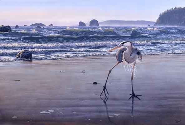 "Stepping Out" Great Blue Heron 20"x30" Acrylic back