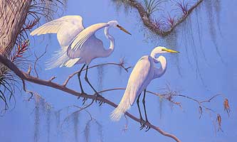Albert Earl Gilbert (Gil) specializes in painting rare birds and travels throughout the world to study his subjects first hand. Widely respected as an ornithologist, he's illustrated an impressive list of books, nature magazines and wildlife conservation stamps, and his paintings hang in major museum and private collections. Gil won the Federal Duck Stamp competition the first time he entered with a Drake Hooded Merganser. His mission as an artist includes drawing attention to the plight of our wildlife, and he's served as a member of the President's Council on the Arts and past President of the Society of Animal Artists. |