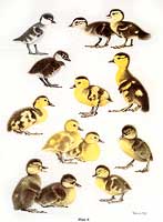 Colleen Nelson's magnum opus, Downy Waterfowl of North America, is a detailed study of the young of 54 waterfowl species. (See bibliography.) This monograph, the culmination of 30 years of study by an exceptionally talented artist is also the product of a dedicated researcher whose detailed descriptions and measured drawings provide a basis for the study of variation in plumage patterns and behavior in these day-old young. Nelson, mother of seven, Phi Beta Kappa and biologist lives in Winnipeg. Disabled since 1989 by a rare, progressive, non-fatal brain-stem disorder, Nelson no longer draws or paints, but still has available a number of watercolors (no ducklings), about 24 copies of a color print, and line-serigraphs of life-sketches. |