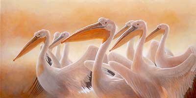 white birds -- pelicans, white peacocks, etc., |
