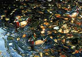 He has two distinct styles, but most of his work is of representational wildlife painted in acrylics, a detail-friendly medium that allows an emphasis both on the scientific accuracy of his subjects and their individuality. What he calls his looser "ecological core" paintings in oil or acrylic, by contrast, do not always contain animals, yet they always define a species, including plants and occasionally reptiles; they are about color, light, and pattern in the natural world and have appeared in the magazine of elegant interiors, Architectural Digest. |