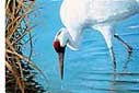eintroduced endangered Whooping Crane wades in a central Wisconsin pond. |