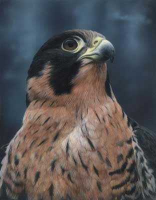 This painting of an Anatum Peregrine by David N. Kitler was one of several birds of prey images by the artist that were featured in the Spring 2004 issue of American Falconry magazine. |