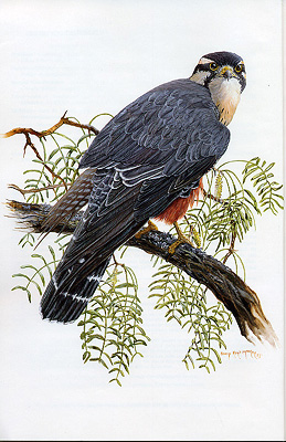 The frontispiece the Wilson Bulletin (Vol. 115, No. 4, December, 2003) by Registry participant Barry Kent MacKay features an Aplomado Falcon (Falco femoralis) from southern Texas. |
