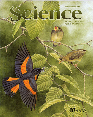 (Vol. 306, No. 5705, December 24, 2004) portraying Redstart parental care was painted by Registry participant, John ON'eill.