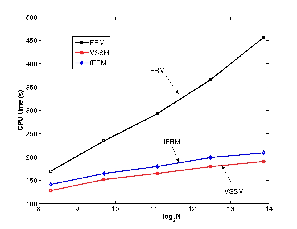 Several numerical algorithms for dynamic Monte Carlo simulations of surface chemistry have been proposed in the past. The variable step size method (VSSM) is commonly used for systems where the rate coefficients are constant in time, owing to its good efficiency. If rate coefficients vary in time, the first reaction method (FRM) has been shown to be more efficient. However, the cost of this algorithm to execute a reaction step depends on the considered lattice size, which can make this method inefficient for systems involving surface phenomena on different scales. Here we propose a general and efficient algorithm, the fast first reaction method (fFRM), which has the advantages of being applicable to systems with constant and time-varying rate coefficients, and of having a computational cost per reaction step that is independent of the lattice size. An additional feature of fFRM is that it is rejection-free, which means that once a reaction class is selected, a reaction of that type will be executed. A rejection-free variant of VSSM, called rVSSM, is also presented, which leads to an approximately 15% speedup compared with the VSSM algorithm for the considered example.