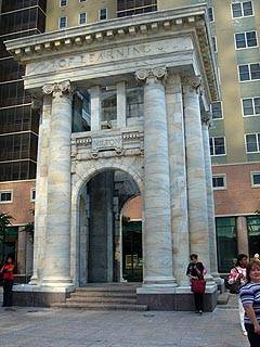 A four-sided monument to great writers.
