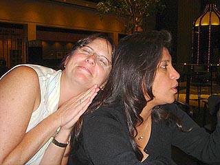 Lisa Simone and Maria Schultheis in the hotel bar.