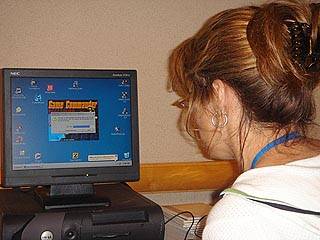 Sally Dykeman makes sure her software is working at the Developers Forum.