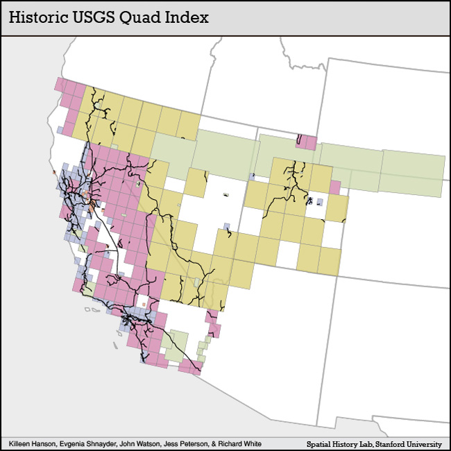 4 Quads come in a variety of sizes, as small as 7.5' and as large as 60'. Some smaller quads are also layered on top of larger quads from earlier surveys.