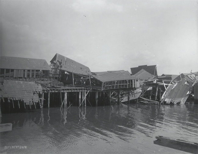 22 “Butchertown. [Ruined Piers.], ” 1906, Photograph, Berkeley, CA, Bancroft Library, The 1906 San Francisco Earthquake and Fire Digital Collection, http://www.oac.cdlib.org/ark:/13030/hb5j49p27w/?brand=oac4.