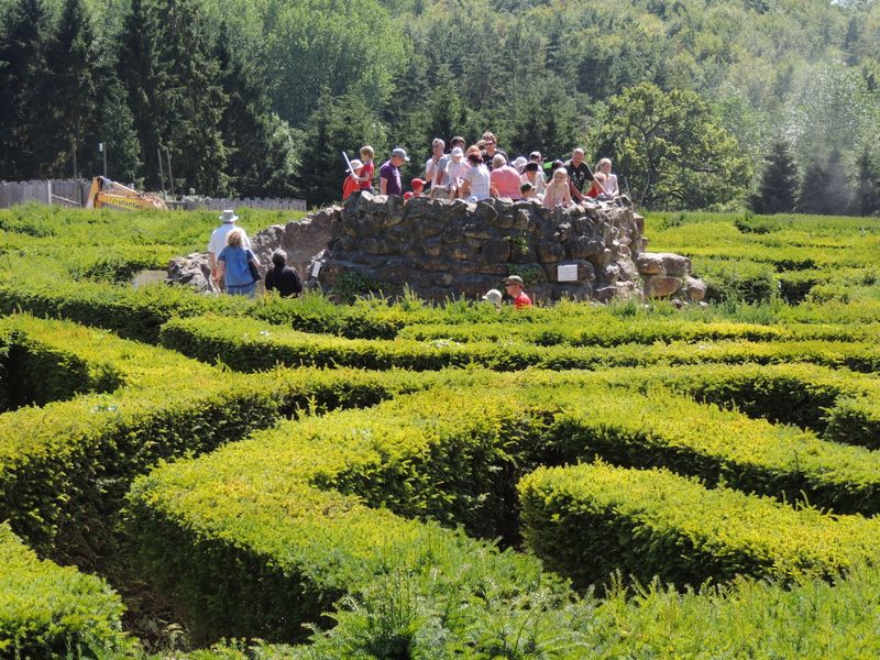 Eastling201307 -- The prize at the Leeds Castle Maze. Deb and Don have just made it.