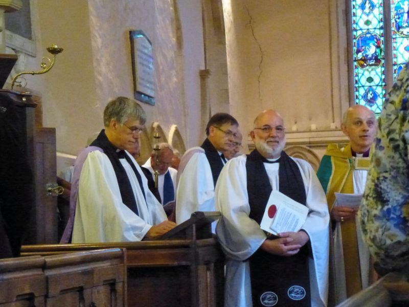 Eastling201307 -- Don's induction service. Bishop of Canterbury to Don's left.