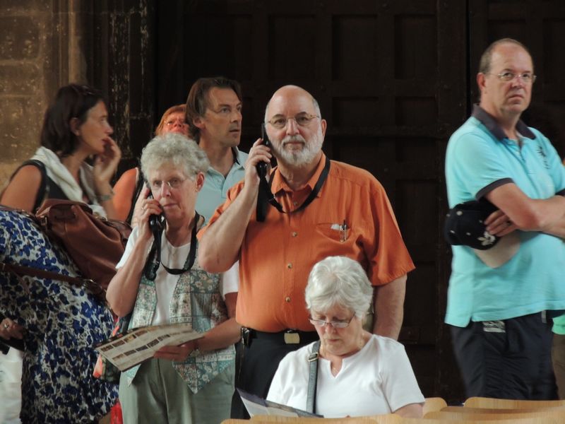 Eastling201307 -- Norma and Don taking audio tour in Canterbury Cathedral