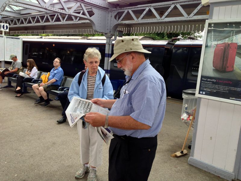 Eastling201307 -- Don & Norma waiting for the train from Faversham to London