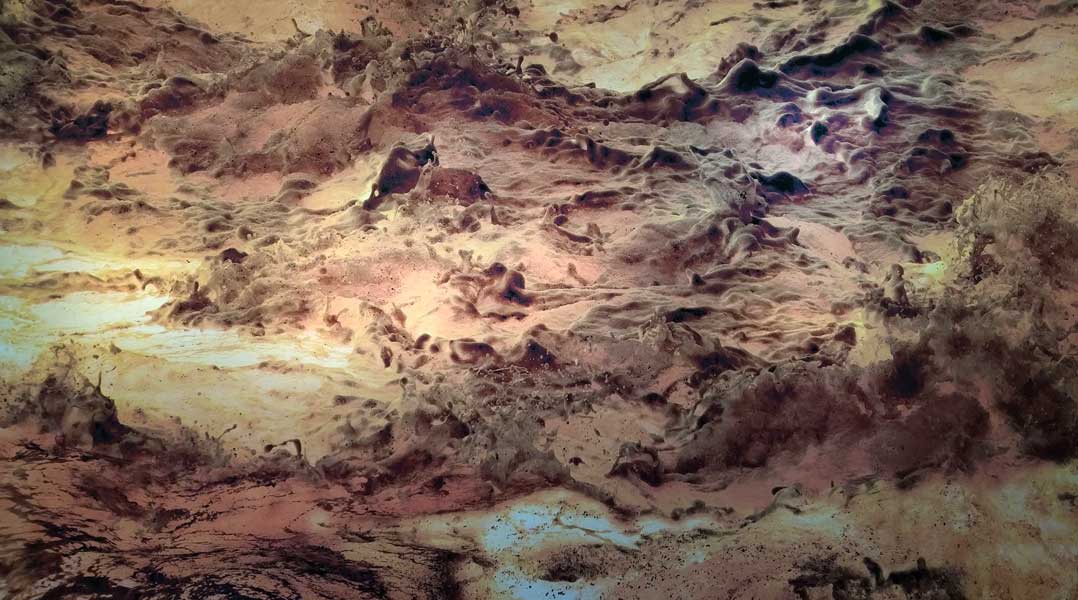 The composited photos are color reversed, so that blues become yellows and greens become reds, and the ocean’s white foam becomes a deep black. The 50 megapixel images accentuate the ceaseless fluid dynamics of the ocean, and the warm tones and inky surface, reminiscent of ink wash paintings, enable us to see the ocean with fresh eyes. The strange confluence of water and dry land evoke both the timelessness and the vulnerability of our oceans.