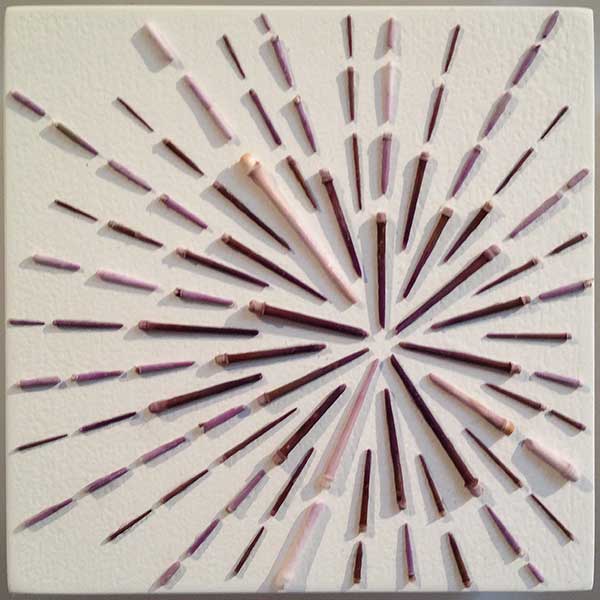 “Sand box” is a term used by designers and engineers for workshopping an idea. In this piece, the tropes of visual culture are “sand boxed” using detritus culled from a small northern California beach. Plaids, spirals, sound waves, golden sections, Stonehenge, Sol Lewitt, Jay DeFeo, Tara Donavan, Donal Judd, Lee Bontecou and others are part of the parlance in this playful reflection on visual culture.