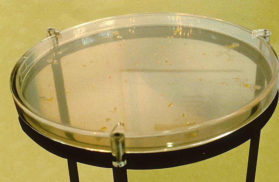 The slime mold Physarum polycephalum was used to make dot-to-dot drawings using oatmeal. This slime mold loves to eat oatmeal and can sense it if it's no more than three inches away. It will make a straight line for the flakes, allowing drawings to be made.