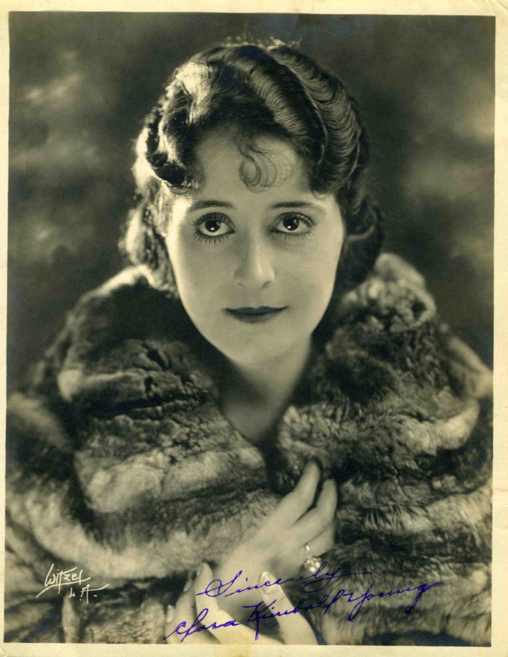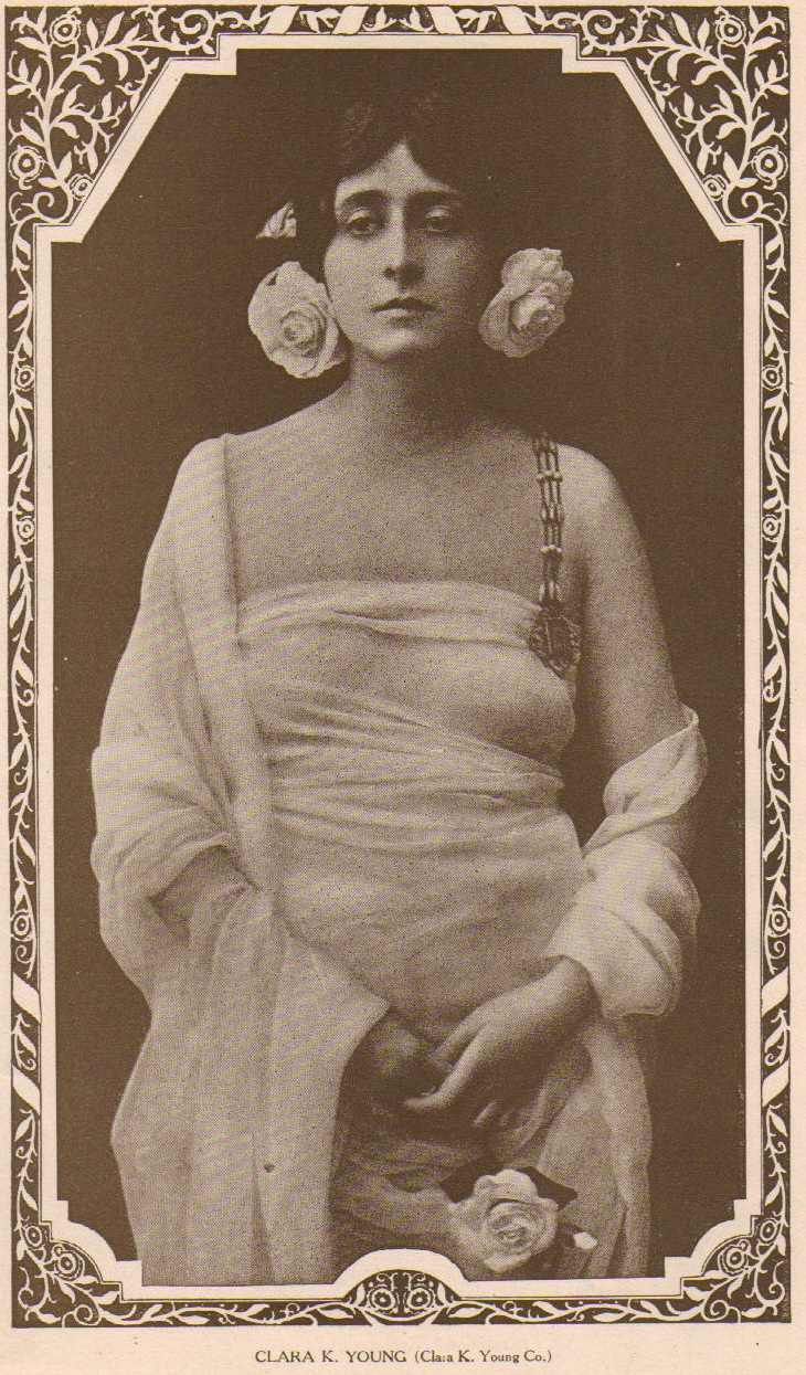 Clara apparently on the set of The Crusades with Cecil B. DeMille. As far as i know, nobody has yet spotted her in the film. The snipe on the back reads: BACK IN THE LIMELIGHT - Once Hollywood's most famous film star, Clara Kimball Young is back at work in character parts. Cecil B. DeMille, pioneer director, cast her in a role in his current Paramount production "The Crusades". Here they are talking ove old times between scenes on the set. | A nice portrait from rom Pat Wilson, who found it under a picture frame. | ||