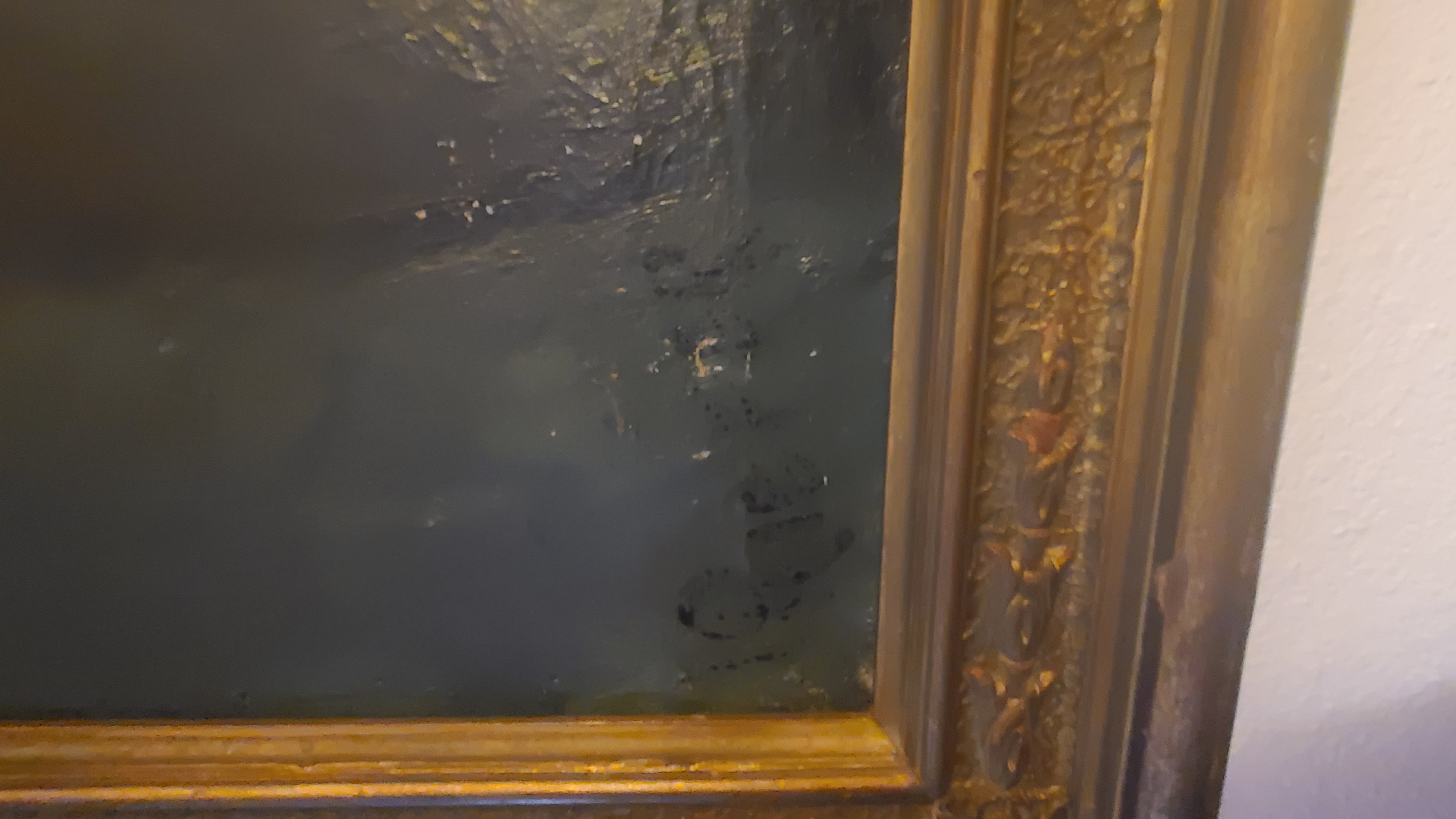 Elizabeth Elias, the granddaughter of Barbara Ulibarri, who was Clara's second cousin and provided me with many of the pictures in the gallery. She now has the painting of Clara and provided me with a photo of it. We have been unable to identify the signature, which you can see here | |