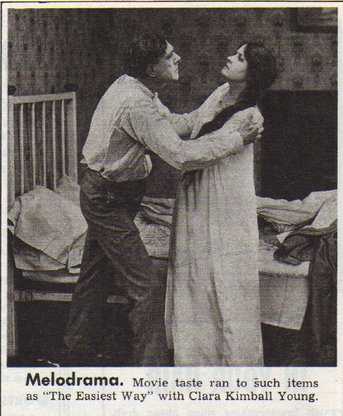 THE EASIEST WAY. (Seven Parts--April). The cast: Laura Murdock (Clara Kimball Young); Elfie St. Clair (Louise Bates); Willard Brockton (Joseph Kilgour); John Madison (Rockcliffe Fellowes); Annie (Cleo Desmond); Jim Weston (George Stevens); Burgess (Frank Kingdon) Nellie De Vere (Mae Hopkins); Jerry (Walter McEwan) Directed by Albert Capellani.