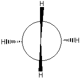 Note that ethane has two conformations with appreciable symmetry: one in which the hydrogen atoms are eclipsed and another in which they are staggered. In the figure above they are staggered. Use the mouse to get the picture to look like the Newman projection for staggered ethane that we looked at earlier. The conformations differ only by rotation about the carbon-carbon bond, which happens easily at room temperature. Just for fun, try to imagine what the symmetry elements would be for both conformations.