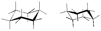Below are some alternative representations of cyclohexane. Notice that unlike benzene, cyclohexane is not flat, but adopts a puckered shape that chemists refer to as a "chair." Below are two conformations of benzene. We will not go into how they differ and how they interconvert, but trust me, it's very cool.