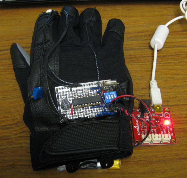 Thanks for coming to our site. Below, you can see a video of the Glove Mouse in action, as well as some photos. You can also access all technical documents pertaining to the project -- including part numbers and suppliers -- at the bottom of the page.