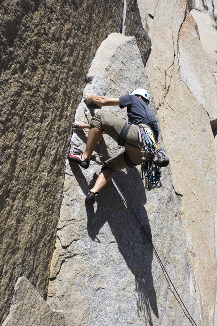 Durbs on Boulder Problem, at the team's free-climbing high-point on the pitch: