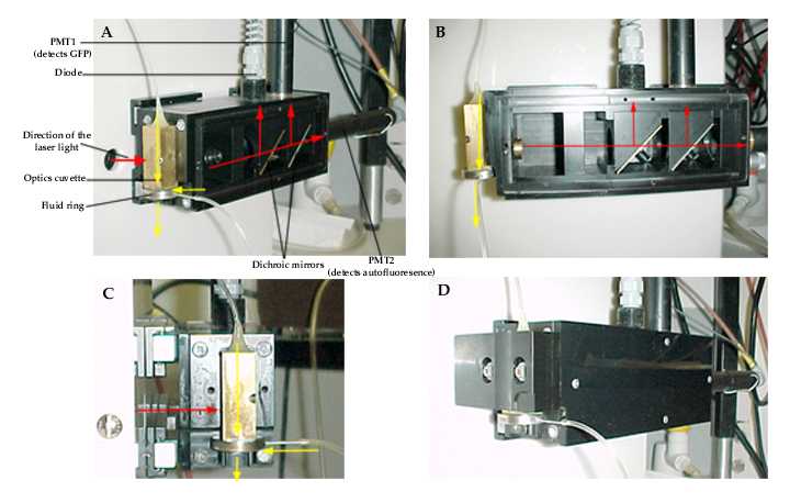 the laser clean-up filter), and light detection elements. The optics cuvette mounts