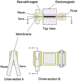 separated by a very thin central wall (membrane). Sorting is achieved by moving the