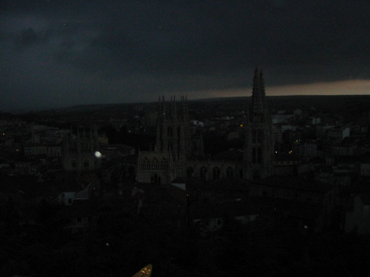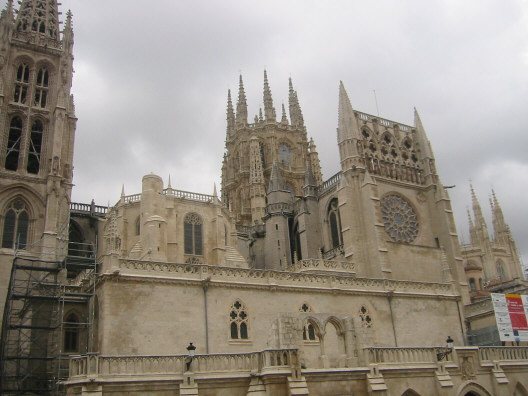 Among the monuments to Burgos' glory are the Arco de Santa Maria, containing the old room of royal council and images of the great founders and heroes of the city. The cathedral, where El Cid Campeador and his wife rest still is a stunning example of Gothic architecture. Above the city, the old castle of Burgos, destroyed in a siege by Napoleon's troops, provides a compelling view over the city. Our first act when we arrived here was to eat pizza.