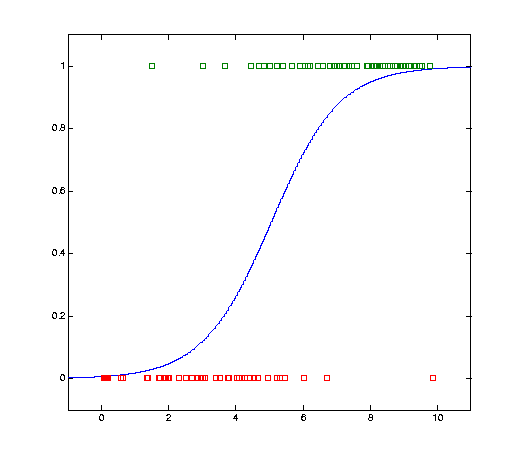 % Logistic regression modeling via geometric programming (GP). % (a figure is generated) % % This examples solves a logistic regression example presented % in the book "Convex Optimization" by Boyd and Vandenberghe % (see pages 354-355). More info can be found in the attached report: % % Logistic regression via Geometric Programming % by Seung Jean Kim and Almir Mutapcic % (Will be available soon.) % % Solves the logistic regression problem re-formulated as a GP. % The original log regression problem is: % % minimize sum_i(theta'*x_i) + sum_i( log(1 + exp(-theta'*x_i)) ) % % where x are explanatory variables and theta are model parameters. % The equivalent GP is obtained by the following change of variables: % z_i = exp(theta_i). The log regression problem is then a GP: % % minimize prod( prod(z_j^x_j) ) * (prod( 1 + prod(z_j^(-x_j)) )) % % with variables z and data x (explanatory variables). % % Almir Mutapcic, 11/05 % load problem data from the Convex Optimization book load_log_reg_data; % order the observation data ind_false = find( y == 0 ); ind_true = find( y == 1 ); % X is the sorted design matrix % first have true than false observations followed by the bias term X = [u(ind_true); u(ind_false)]; X = [X ones(size(u,1),1)]; [m,n] = size(X); q = length(ind_true); % optimization variables gpvar z(n) t(q) s(m) % objective function obj = prod(t)*prod(s); constr = gpconstraint; % constraints for k = 1:q constr(k) = prod( z.^(X(k,:)') ) <= t(k); end for k = 1:m constr(end+1) = 1 + prod( z.^(-X(k,:)') ) <= s(k); end % solve the GP problem [obj_value, solution, status] = gpsolve(obj, constr) assign(solution) % retrieve the optimal values and plot the result theta = log(z); aml = -theta(1); bml = -theta(2); us = linspace(-1,11,1000)'; ps = exp(aml*us + bml)./(1+exp(aml*us+bml)); plot(us,ps,'-', u(ind_true),y(ind_true),'o', ... u(ind_false),y(ind_false),'o'); axis([-1, 11,-0.1,1.1]);