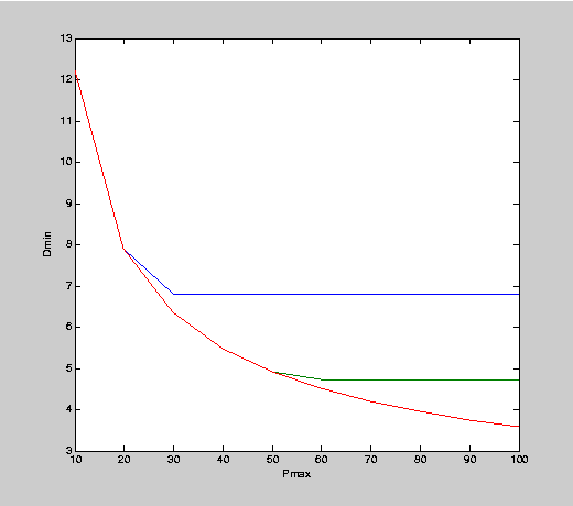 plot(Pmax,min_delay(1,:), Pmax,min_delay(2,:), Pmax,min_delay(3,:));
