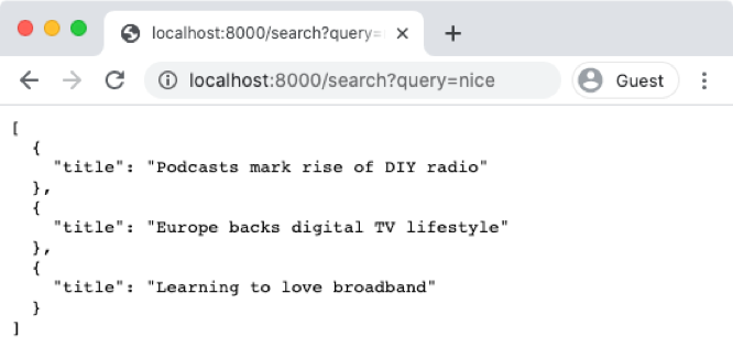 You can directly recreate this request by going to http://localhost:8000/search?query=nice