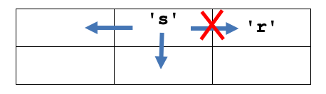 Consider the down-left and down-right diagonal moves of the 's' in this situation: