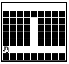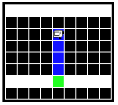 b1. Bit is in a 1 square tall tunnel facing the right side of the world. Move bit forward zero or more squares until a clear square appears above - a chimney Paint the square below the chimney opening green. Move bit straight up the chimney until blocked, painting every moved to square blue.