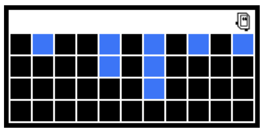Bit has a wall at its back and is facing into a hole that is 1 or more squares deep. Move bit forward until blocked, painting every moved-to square blue. This will fill the hole with blue. Then return to the original location and facing.