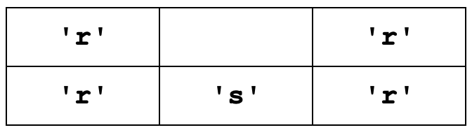 [['r', None, 'r'], ['r', 's', 'r']]
